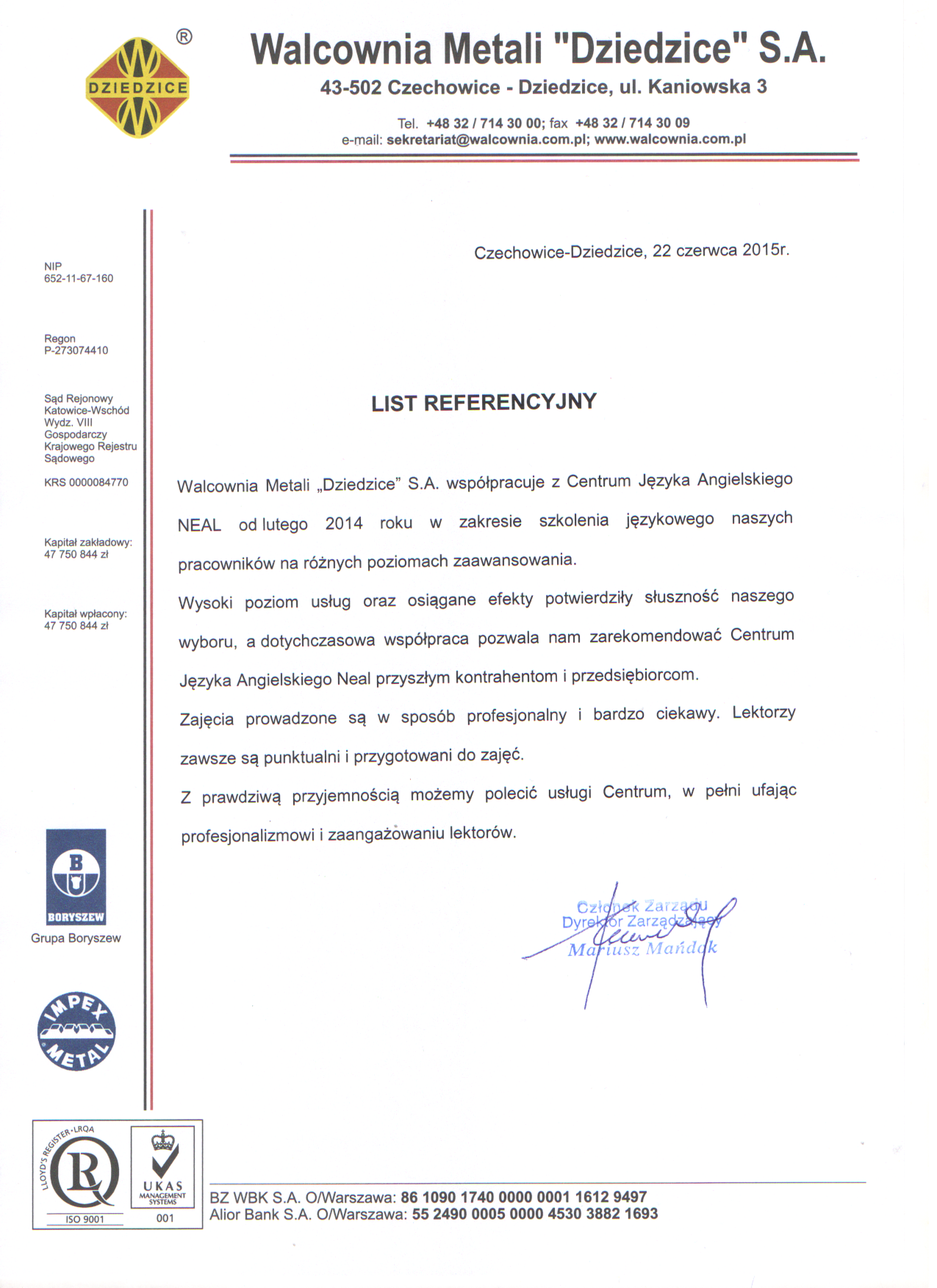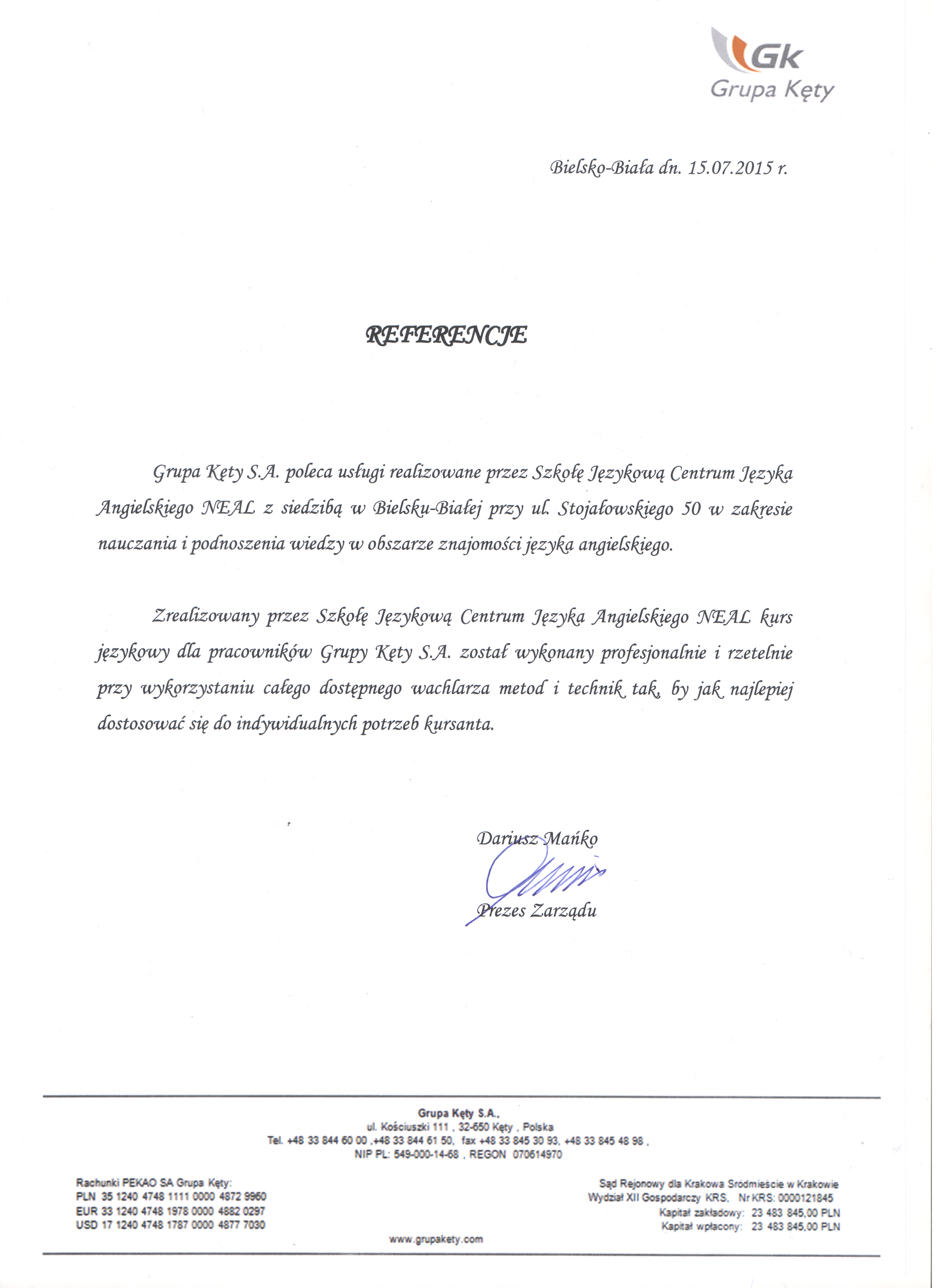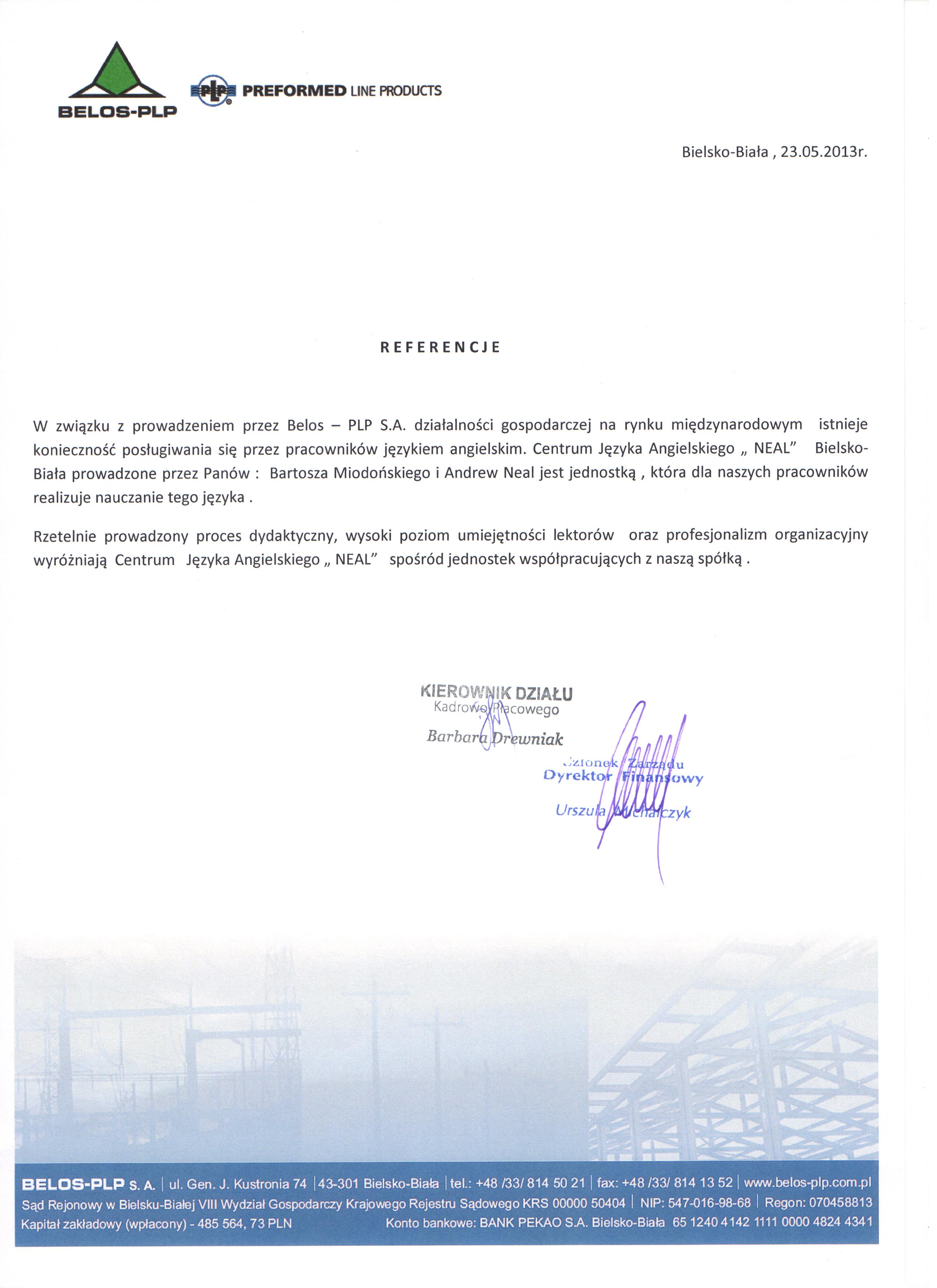 Zajęcia mogą odbywać się na terenie Państwa Firmy lub w siedzibie Centrum Języka Angielskiego NEAL w grupach zamkniętych lub otwartych.