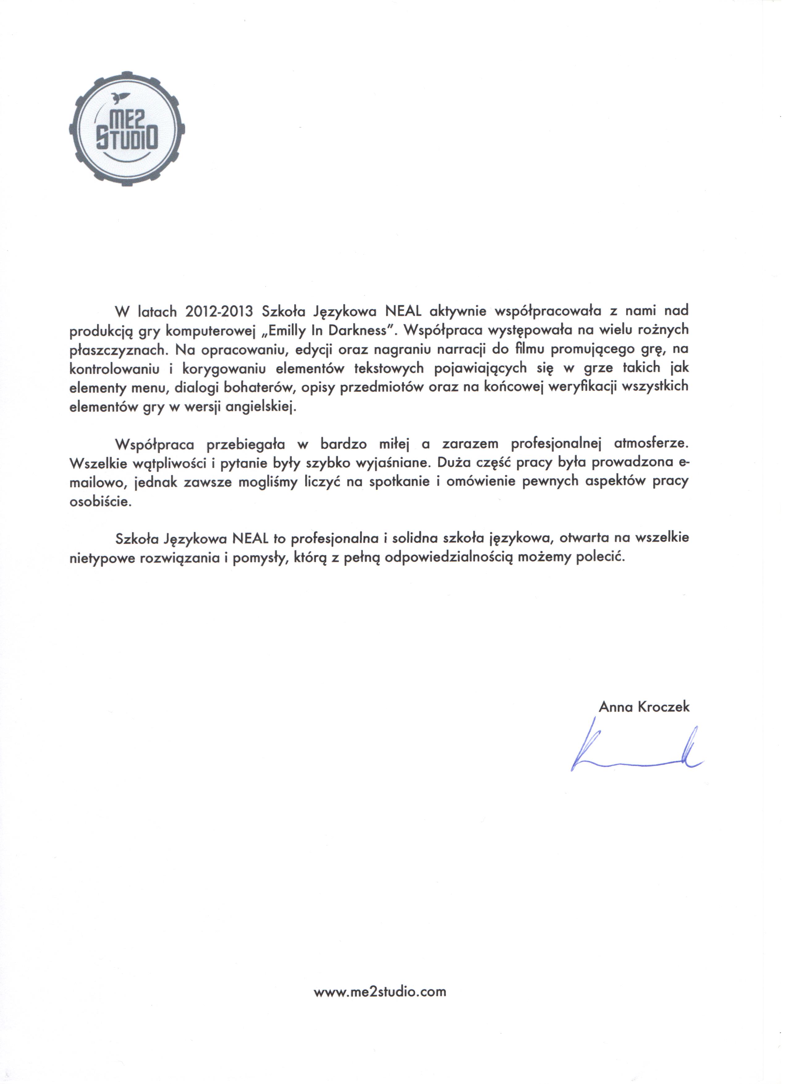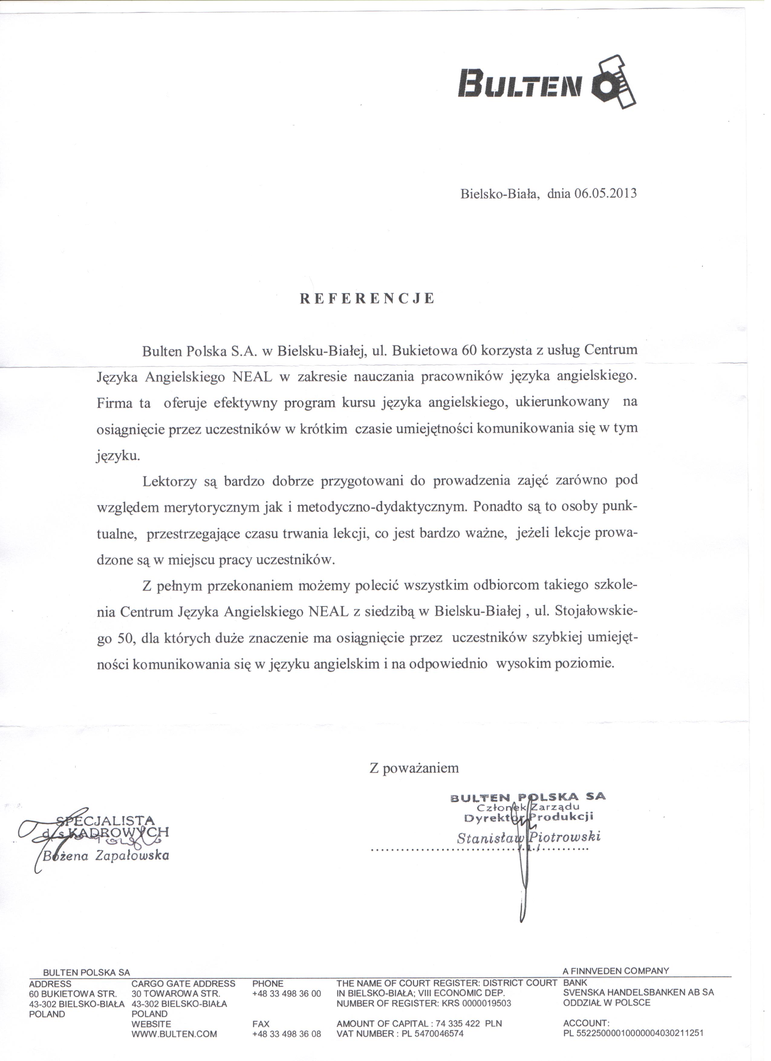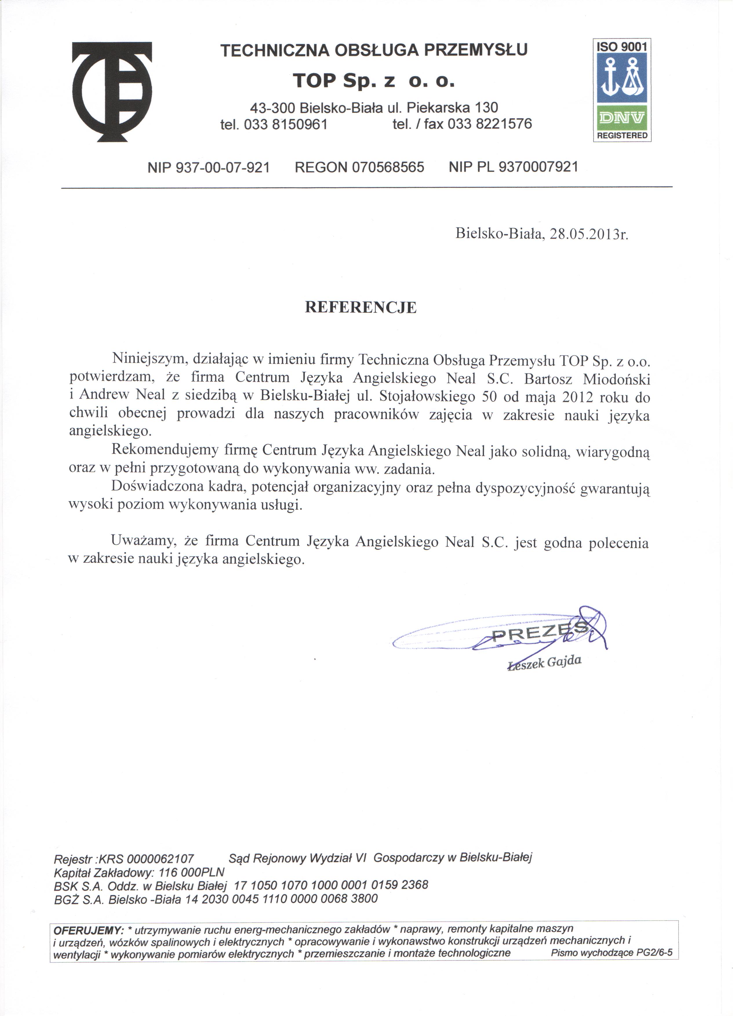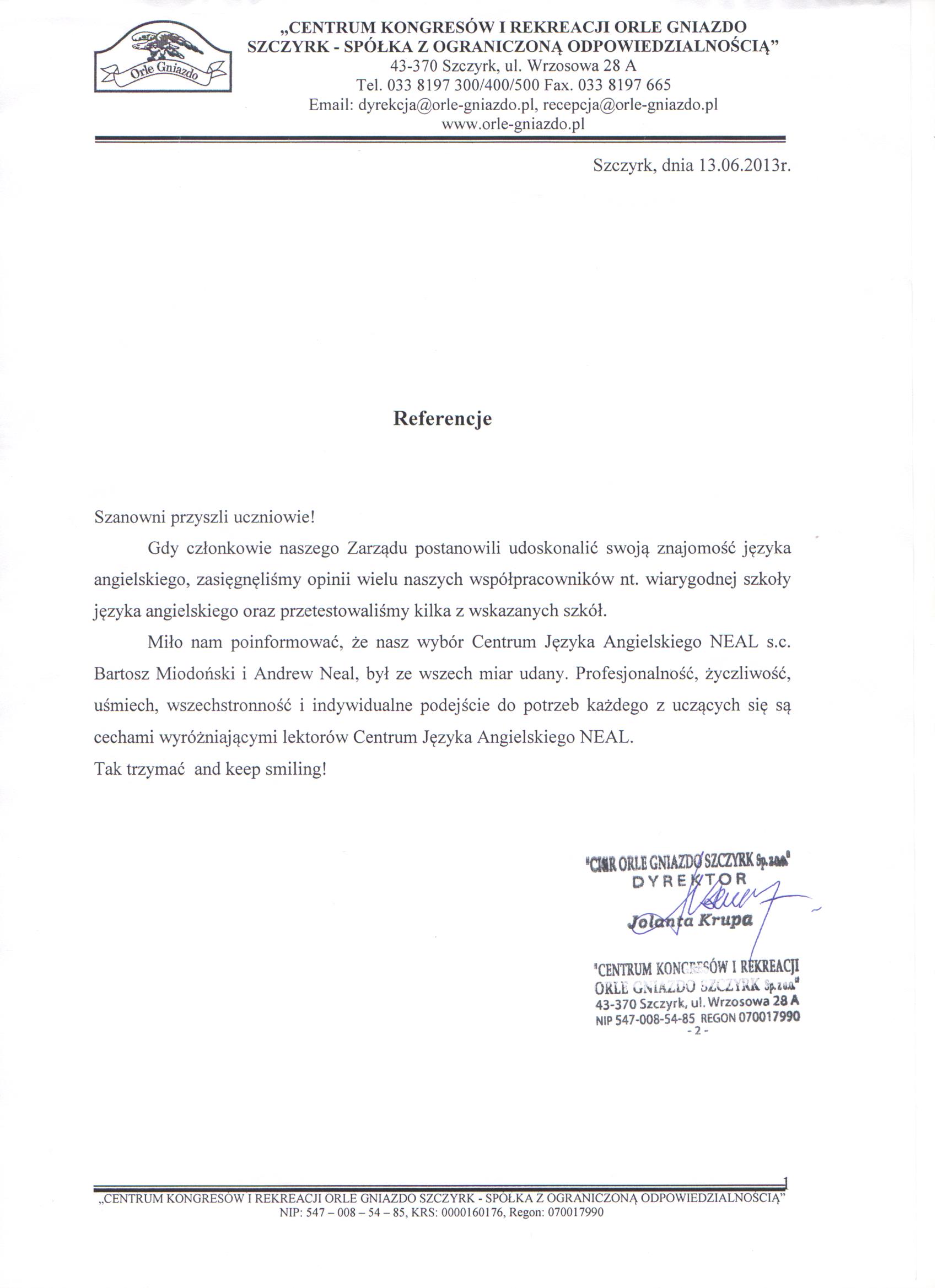 Zajęcia mogą odbywać się na terenie Państwa Firmy lub w siedzibie Centrum Języka Angielskiego NEAL w grupach zamkniętych lub otwartych.